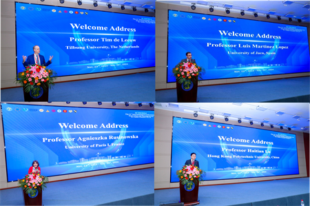 大会组委会代表荷兰蒂尔堡大学的Tim de Leeuw教授、西班牙哈恩大学的Luis Martinez Lopez教授、法国巴黎第一大学的Agnieszka Rusinowska教授以及香港理工大学的陆海天教授分别代表大会组委会单位向大会的顺利召开表示祝贺。