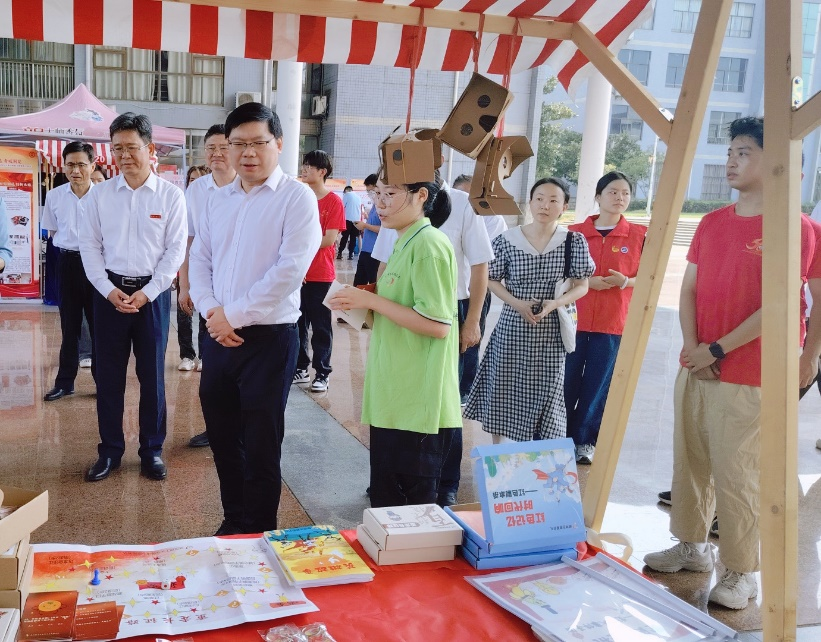 在集中展示环节,团省委书记刘治田等领导亲临我院“小话筒”传递“大能量”—“红色小主播”全链条培养计划展区,对团队志愿服务工作予以充分肯定与高度评价。