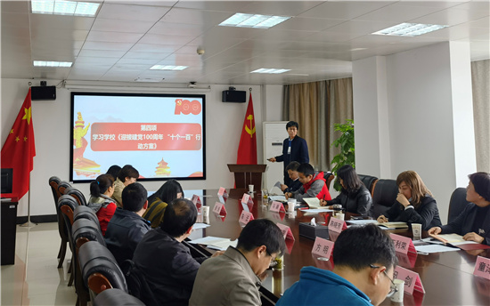 成人电影 党委副书记杨伟波领学学校《迎接建党100周年“十个一百”行动方案》,并就《成人电影 党委开展党史学习教育的实施方案》进行了工作部署。